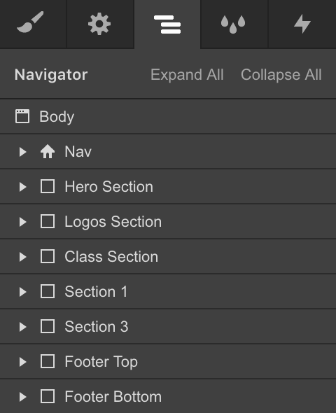The navigator tab gives you a clear breakdown of elements and their parents, as well as where they are located within the page.