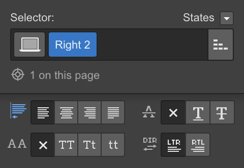 By now you may have noticed that web design, simply put, is a series of boxes inside of boxes with text and images inside of them. Try selecting the parent element of this text Right 2 then changing the text alignment.